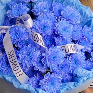 Imeline siniste krüsanteemide kimp, mis rõõmustab igat hetke ja toob värskust ning elegantsi teie erilisse päeva.