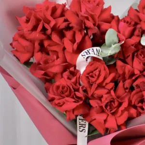 Luksuslik punaste rooside kimp, täiuslikuks kingituseks. Stiilne pakend ja lint.